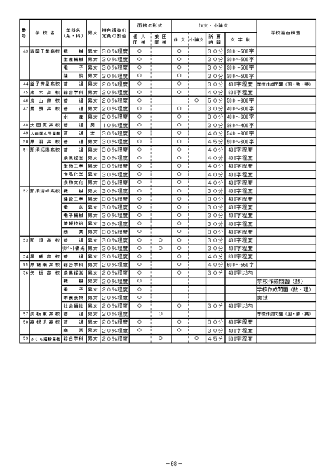 特色選抜の定員の割合と選抜の方法